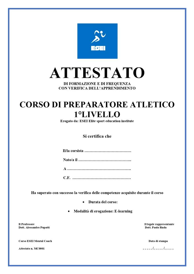 CORSO PREPARATORE ATLETICO 1°LIVELLO